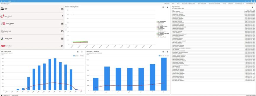 Over 200 actionable retail reports included with GoldTech Retail Manager and BI/BA real-time reporting tools. These reports are available on demand and near real time in the format for device you want to view them. Additionally, reports are exportable to Excel, HTML, XML, and PDF.